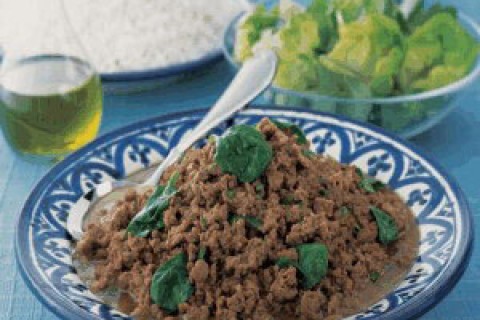 وقت التحضير :2 دقيقة وقت الطهي : 90 دقيقة عدد الاشخاص :5 المقادير 500x غ من لحم البقر المفروم قليل الدهن 70x غ من البصل٬ مفرومة 0.25x ملعقة صغيرة من الفلفل الأسود المطحون 0.25x ملعقة صغيرة من القرفة المطحونة 5x…