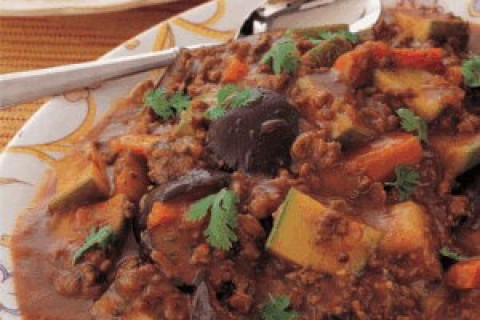 وقت التحضير :25 دقيقة وقت الطهي : 35 دقيقة عدد الاشخاص :6 المقادير 3x ملاعق طعام من الزيت النباتي 125x غ من البصل٬ مفرومة 3x فصوص من الثوم٬ مسحوقة 400x غ من لحم البقر المفروم 250x غ من الباذنجان٬ مقطّعة…
