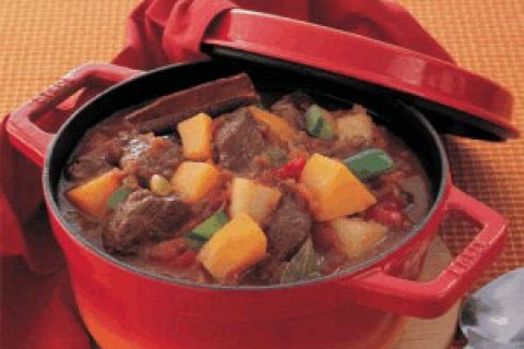 وقت التحضير :20 دقيقة وقت الطهي : 60 دقيقة عدد الاشخاص :6 المقادير 2x ملاعق طعام من زيت الزيتون 750x غ من لحم البقر قليل الدهن٬ المُقطّع إلى مكعّ 3x حبات متوسطة الحجم من البصل٬ مقطّعة إلى مكعّب 1.5x ملعقة…