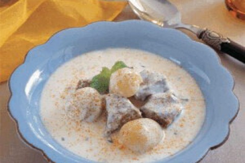 وقت التحضير :10 دقيقة وقت الطهي : 15 دقيقة عدد الاشخاص :5 المقادير 1.5x كغ من اللبن الزبادي 1x من صفار البيض٬ المخفوق 2x ملاعق طعام من دقيق الذرة٬ المذوّب في صفار ال 2x فصوص من الثوم٬ مسحوقان 0.5x كوب…