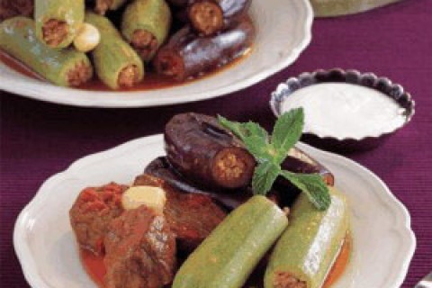 وقت التحضير :30 دقيقة وقت الطهي : 120 دقيقة عدد الاشخاص :6 المقادير 800x غ من الكوسا الصغير 650x غ من الباذنجان الصغير 100x غ من الأرز المصري٬ المنقوع لمدة ساعة والمُصف 200x غ من لحم البقر المفروم قليل الدهن…