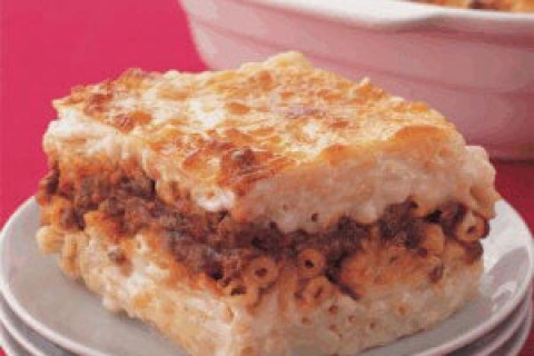 وقت التحضير :25 دقيقة وقت الطهي : 45 دقيقة عدد الاشخاص :6 المقادير 375x غ من المعكرونة الأنبوبية الصغيرة 2x ملاعق طعام من الزيت النباتي 200x غ من البصل٬ مفرومة 300x غ من لحم البقر المفروم 5x ملعقة صغيرة من…