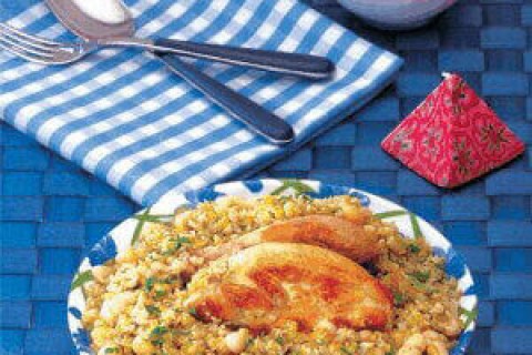 وقت التحضير :25 دقيقة وقت الطهي : 60 دقيقة عدد الاشخاص :6 المقادير 1.5x ملعقة طعام من الزيت النباتي 1x حبة صغيرة الحجم من البصل٬ مفرومة 75x غ من الصنوبر 200x غ من الأرز الأبيض ذو الحبة الطويلة 0.25x ملعقة…