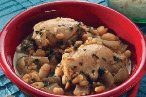 وقت التحضير :20 دقيقة وقت الطهي : 150 دقيقة عدد الاشخاص :5 المقادير 1x كغ من الدجاج الكامل 500x غ من الفاصوليا العريضة البيضاء 3x ملاعق طعام من الزيت النباتي 150x غ من البصل٬ مفرومة 5x فصوص من الثوم٬ مسحوقة…