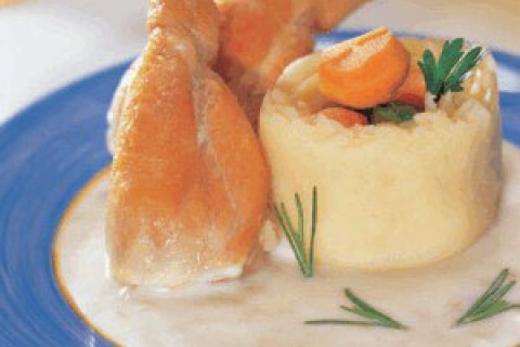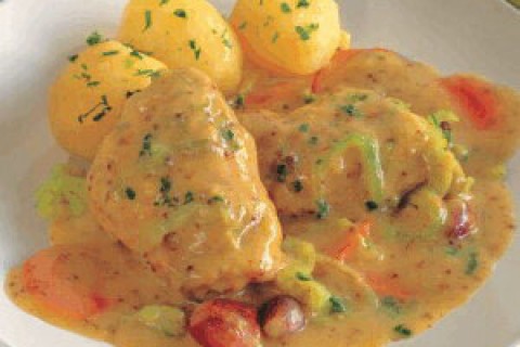 وقت التحضير :20 دقيقة وقت الطهي : 30 دقيقة عدد الاشخاص :6 المقادير 2x ملاعق طعام من الزيت النباتي 1x كغ من أفخاذ الدجاج منزوعة الجلد 1x حبة صغيرة الحجم من البصل٬ مفرومة فرماً ناعم 0.5x ملعقة طعام من الدقيق…