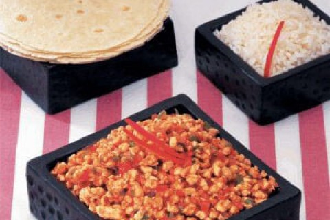 وقت التحضير :25 دقيقة وقت الطهي : 25 دقيقة عدد الاشخاص :4 المقادير 2x ملاعق طعام من زيت الزيتون 125x غ من البصل٬ مفرومة فرماً ناعماً 1x قرن من الفلفل الأخضر الحار٬ المنزوع منه البذ 3x فصوص من الثوم٬ المفروم…