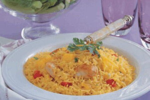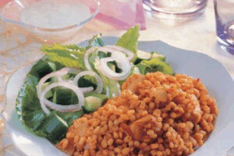 وقت التحضير :25 دقيقة وقت الطهي : 30 دقيقة عدد الاشخاص :5 المقادير 2x ملاعق طعام من زيت الزيتون 125x غ من البصل٬ مفرومة 30x غ من صدور الدجاج منزوعة الجلد٬ مقطّعة إلى مك 2x ملاعق طعام من الكزبرة٬ المفرومة…