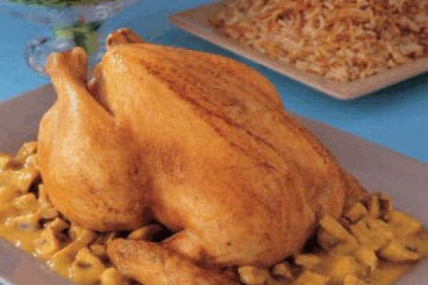 وقت التحضير :20 دقيقة وقت الطهي : 55 دقيقة عدد الاشخاص :5 المقادير 1x كغ من الدجاج الكامل 1750x مل من الماء 4x ملاعق طعام من الزبدة 100x غ من الفطر٬ المقطّع إلى أرباع 4x ملاعق طعام من الدقيق العادي…