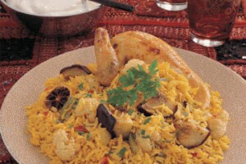 وقت التحضير :20 دقيقة وقت الطهي : 50 دقيقة عدد الاشخاص :7 المقادير 1.5x كغ من الدجاج الكامل٬ المنظّف والمغسول 500x مل من الزيت النباتي٬ للقلي 300x غ من الباذنجان٬ مقطّعة إلى مكعّبات كبيرة 300x غ من القرنبيط٬ المقطّع إلى…