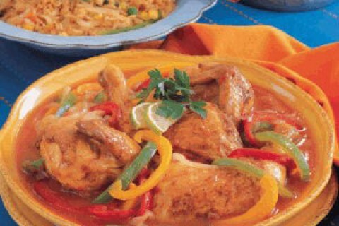 وقت التحضير :20 دقيقة وقت الطهي : 55 دقيقة عدد الاشخاص :8 المقادير 1.5x كغ من أفخاذ الدجاج 35x غ من الدقيق العادي 3x ملاعق طعام من الزيت النباتي 100x غ من البصل٬ مفرومة فرمًا خشنًا 1x عود من الكرفس٬…