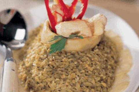 وقت التحضير :20 دقيقة وقت الطهي : 40 دقيقة عدد الاشخاص :5 المقادير 4x ملاعق طعام من زيت الزيتون 1x كغ من فيليه السمك الأبيض 450x غ من البصل٬ مفرومة 75x غ من الصنوبر 400x غ من الأرز الأبيض ذو…