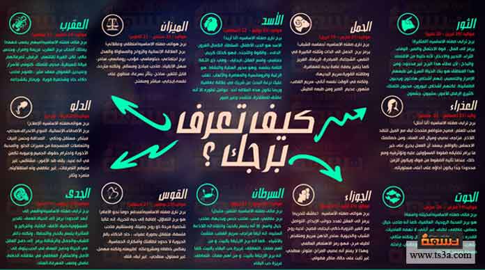 معرفة الابراج قد يكون امر يهمك وتبحث عنه واذا اردت ان تعرفة ما هو برجك اليك انفوجرافيك عربي يشرح بشكل بسيط كيف تعرف برجك من تاريخ ميلادك وكذلك صفات برجك