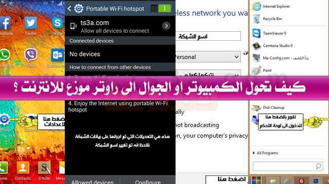 اليك خطوات تحويل الجوال الى جهاز راوتر موزع الى الانترنت بدون برامج خطوة خطوة وكذلك خطوات تحويل الكمبيوتر الى راوتر لاسلكي بدون أي برامج وبطريقة سهلة