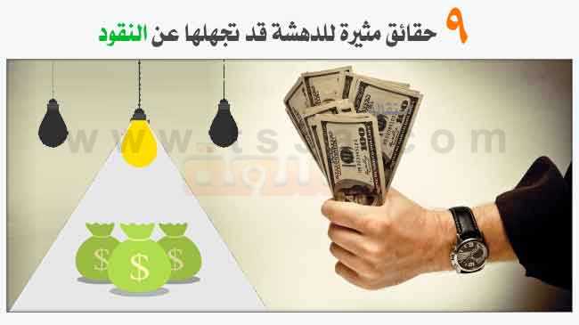 النقود هي شيء نستخدمها جميعاً يوميا، ولكن نادرا ما نفكر بها بعمق، إلا حين الرثاء بأننا لا نملك ما يكفينا. اليك تسعة حقائق مثيرة للدهشة قد تجهلها عن النقود