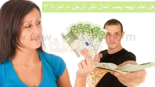 أيهما يا ترى يحب المال أكثر: الرجل أم المرأة؟ هل يوجد فرق في حب المال بين ذكر وأنثى، وهل المرأة تحب المال أكثر من الرجل ام ان الرجل يحب المال أكثر من المرأة