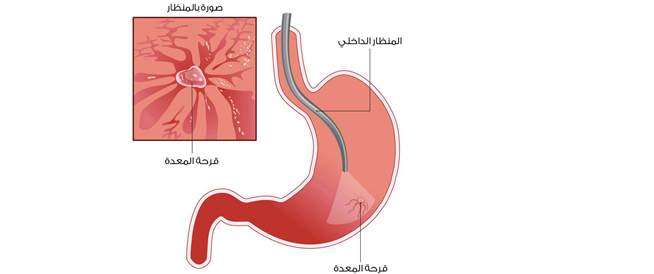 - التنظير الداخلي: الفحص الأكثر دقة لتشخيص قرحة المعدة هو التنظير الداخلي (Endoscopy) لجهاز الهضم العلوي.